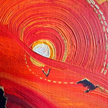 I love working with acrylic. Acrylic is the material for experimentation. With acrylic, you can forget all the rules, you can apply it thickly, or you can use it as watercolour. We can work with thick layers and paint on top with thin lines.
